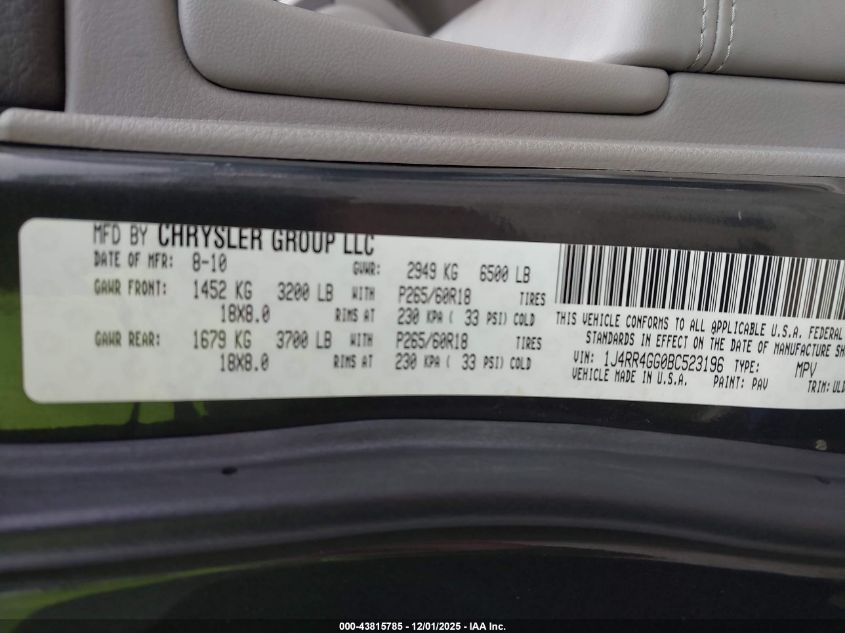 Колір СірийЦиліндри 6Привід Повний привідVIN 1J4RR4GG0BC523196Стан Заводиться та їде (перевірено)Ушкодження Передня або задня AutoRIA
