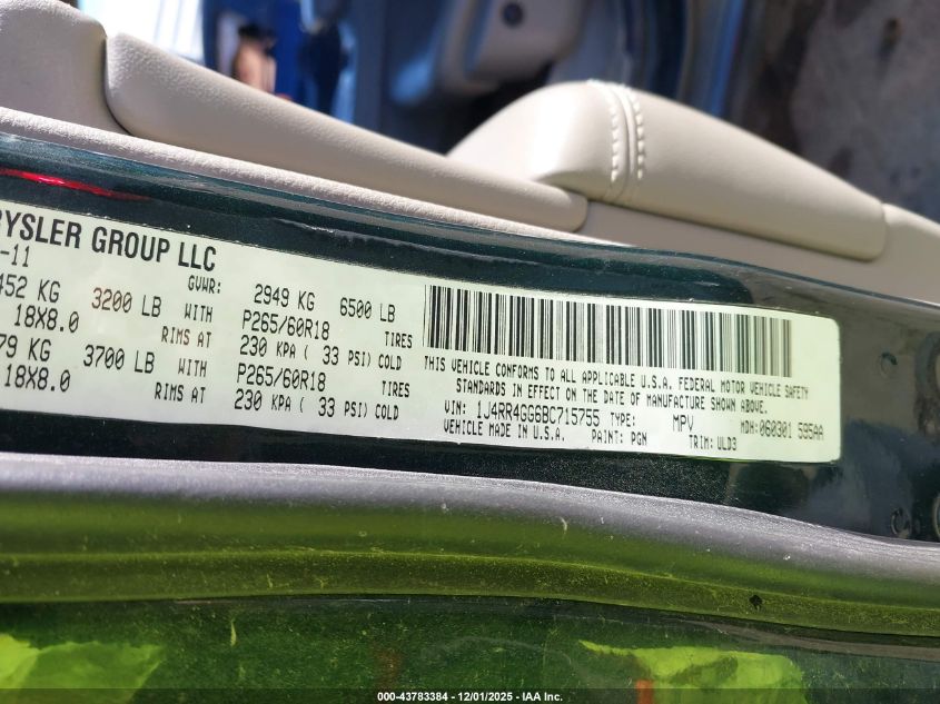 2011 JEEP GRAND CHEROKEE 2011 року Бензин, 3.6, Повний привід, vin - 1J4RR4GG6BC715755 з США