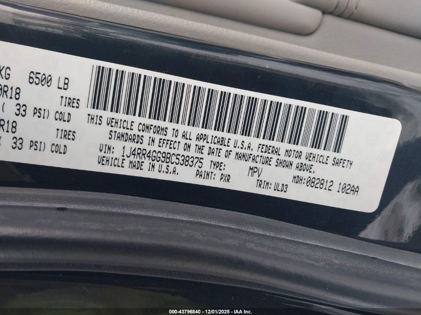 Колір ЧорнийЦиліндри 6Привід Повний привідVIN 1J4RR4GG9BC538375Стан СтаціонарноУшкодження Передня або задня AutoRIA