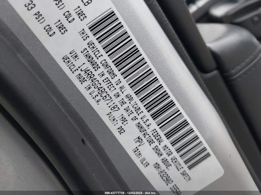 Колір СрібнийЦиліндри 6Привід Повний привідVIN 1J4RR4GG4BC671187Стан Заводиться та їде (перевірено)Ушкодження Права сторона AutoRIA