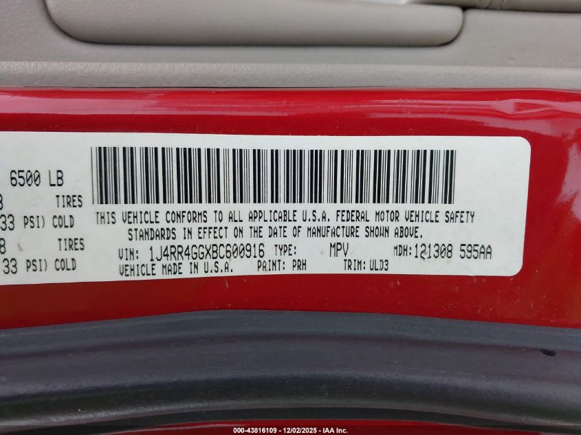 Колір ЧервонийЦиліндри 6Привід Повний привідVIN 1J4RR4GGXBC600916Стан СтаціонарноУшкодження Передня або задня AutoRIA