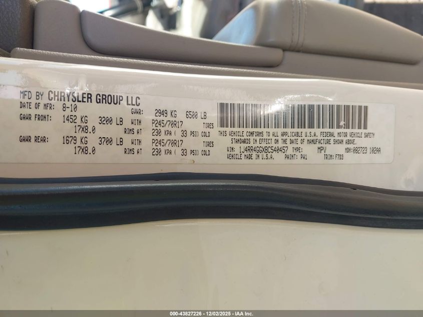 2011 JEEP GRAND CHEROKEE 2011 року Бензин, 3.6, Повний привід, vin - 1J4RR4GGXBC540457 з США