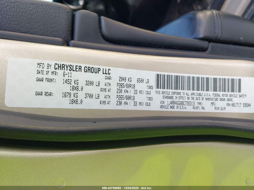 2011 JEEP GRAND CHEROKEE 2011 року Бензин, 3.6, Повний привід, vin - 1J4RR4GG8BC735313 з США