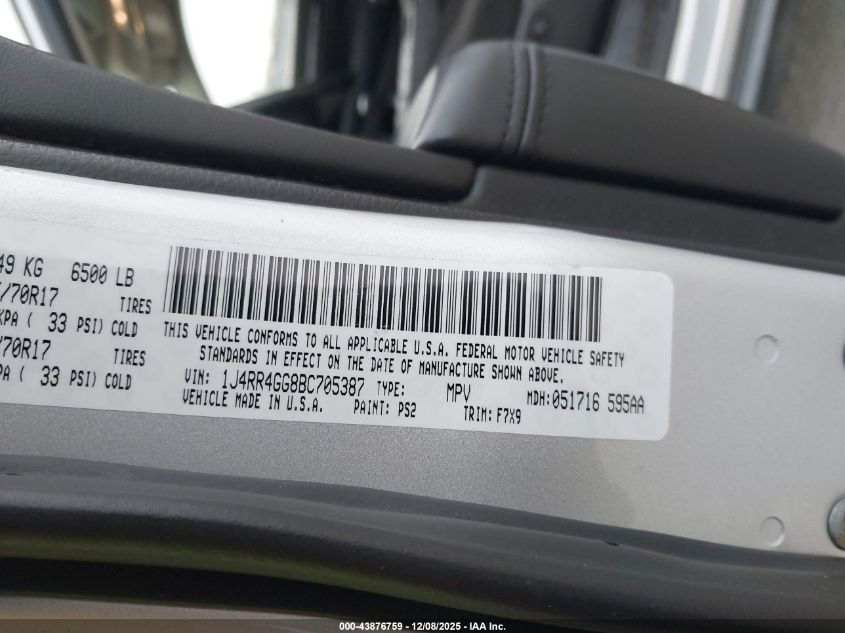 2011 JEEP GRAND CHEROKEE 2011 року Бензин, 3.6, Повний привід, vin - 1J4RR4GG8BC705387 з США