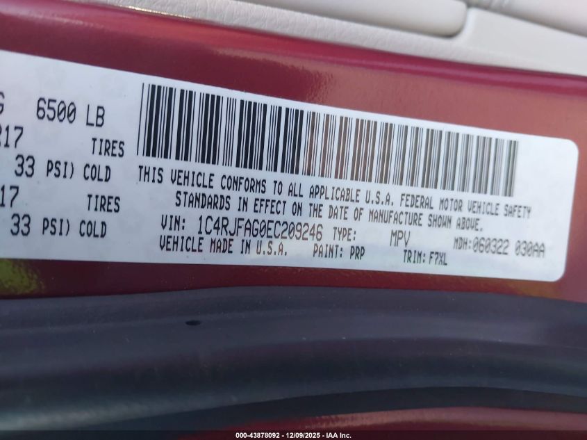 Колір ЧервонийЦиліндри 6Привід Повний привідVIN 1C4RJFAG0EC209246Стан Заводиться та їде (перевірено)Ушкодження Передня або задня AutoRIA