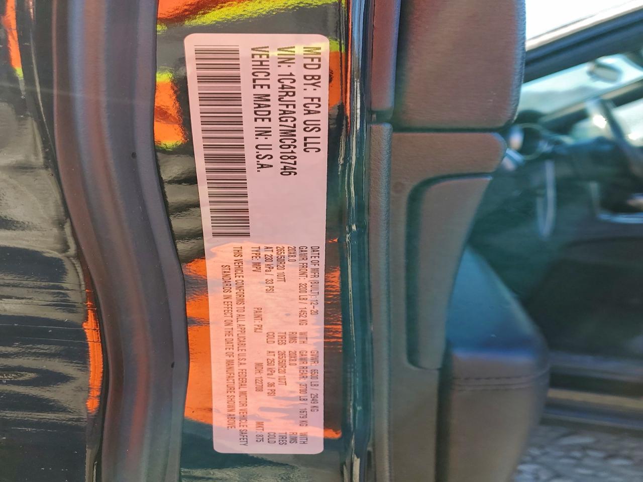 Колір ЧорнийЦиліндри 6Привід 4x4 з заднім приводомVIN 1C4RJFAG7MC618746Стан ЗаводитьсяУшкодження Передня або задня AutoRIA
