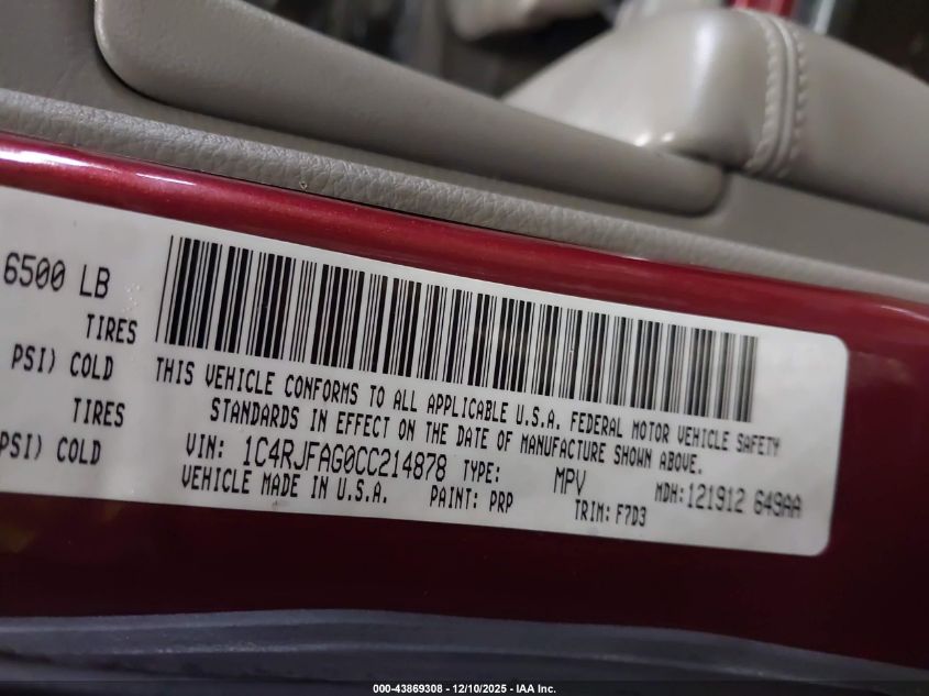 Колір БургундіяЦиліндри 6Привід Повний привідVIN 1C4RJFAG0CC214878Стан Заводиться та їде (перевірено)Ушкодження Задня права AutoRIA