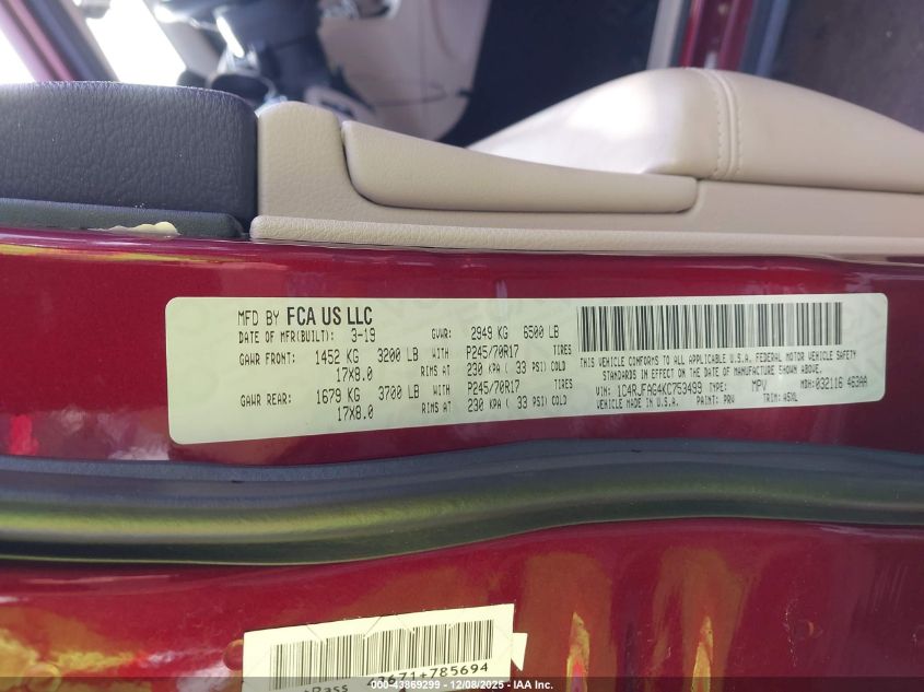 2019 JEEP GRAND CHEROKEE 2019 року Бензин, 3.6, Повний привід, vin - 1C4RJFAG4KC753499 з США