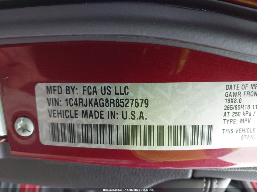 Колір ЧервонийЦиліндри 6Привід Повний привідVIN 1C4RJKAG8R8527679Стан СтаціонарноУшкодження Передня або задняДата аукціону 2025-12-11