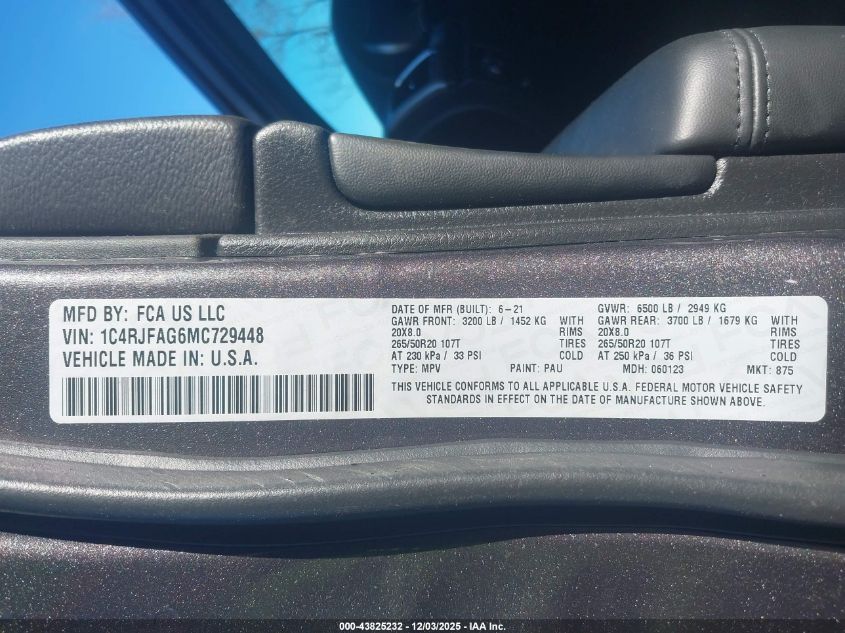 2021 JEEP GRAND CHEROKEE 2021 року Бензин, 3.6, Повний привід, vin - 1C4RJFAG6MC729448 з США