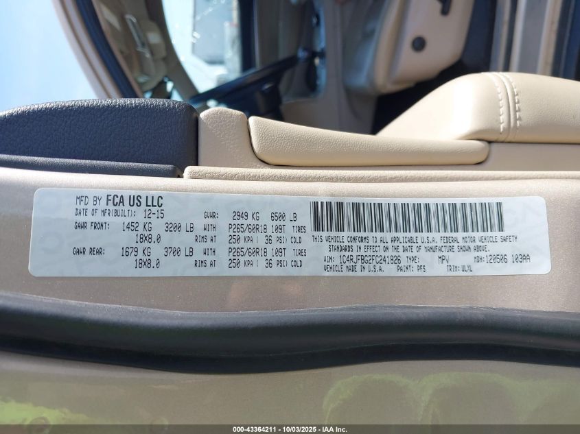 2015 JEEP GRAND CHEROKEE 2015 року Бензин, 3.6, Повний привід, vin - 1C4RJFBG2FC241826 з США