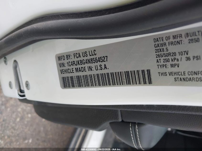 2022 JEEP GRAND CHEROKEE 2022 року Бензин, 3.6, Повний привід, vin - 1C4RJKBG4N8564527 з США