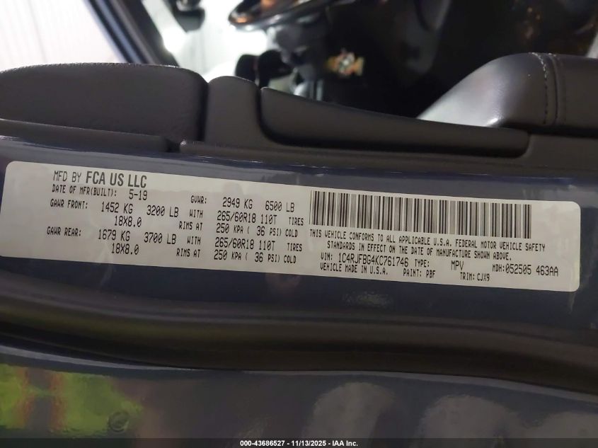 2019 JEEP GRAND CHEROKEE 2019 року Бензин, 3.6, Повний привід, vin - 1C4RJFBG4KC761746 з США