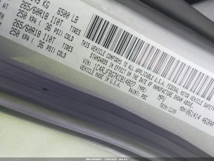 2019 JEEP GRAND CHEROKEE 2019 року Бензин, 3.6, Повний привід, vin - 1C4RJFBG7KC814827 з США