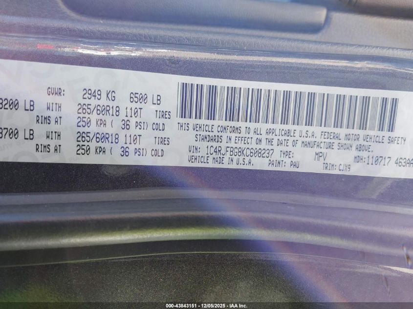 2019 JEEP GRAND CHEROKEE 2019 року Бензин, 3.6, Повний привід, vin - 1C4RJFBG8KC608237 з США