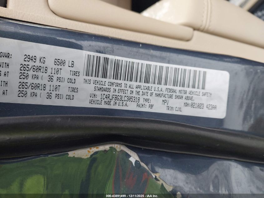 2020 JEEP GRAND CHEROKEE 2020 року Бензин, 3.6, Повний привід, vin - 1C4RJFBG3LC305318 з США