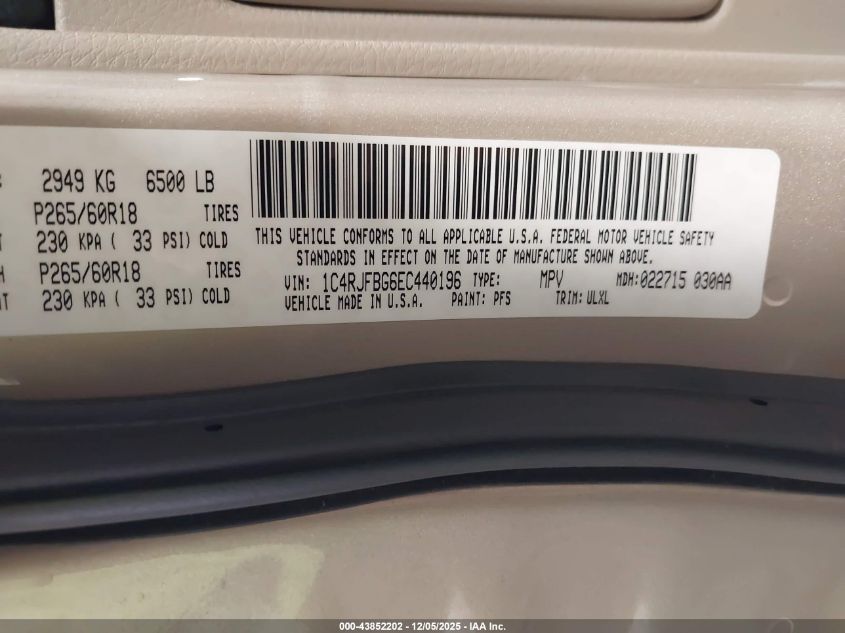 2014 JEEP GRAND CHEROKEE 2014 року Бензин, 3.6, Повний привід, vin - 1C4RJFBG6EC440196 з США