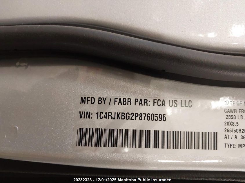 2023 JEEP GRAND CHEROKEE 2023 року Бензин, , Повний привід, vin - 1C4RJKBG2P8760596 з США