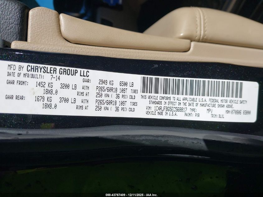 2014 JEEP GRAND CHEROKEE 2014 року Бензин, 3.6, Повний привід, vin - 1C4RJFBG5EC568817 з США