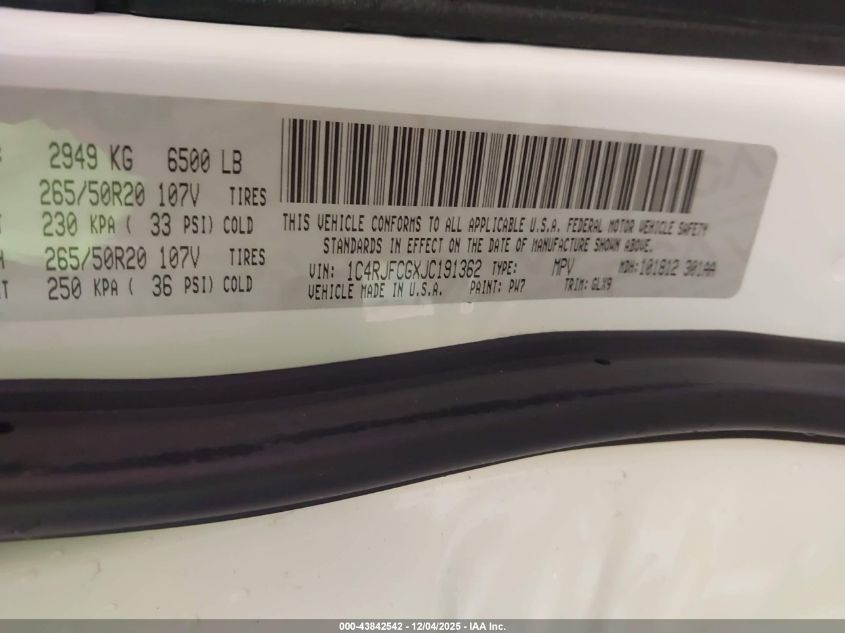 2018 JEEP GRAND CHEROKEE 2018 року Бензин, 3.6, Повний привід, vin - 1C4RJFCGXJC191362 з США
