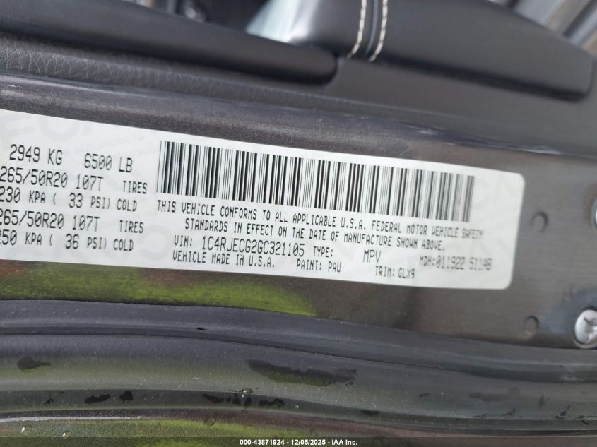Колір СірийЦиліндри 6VIN 1C4RJECG2GC321105Стан Заводиться та їде (перевірено)Ушкодження Передня або задня AutoRIA