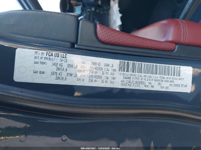 2017 JEEP GRAND CHEROKEE 2017 року Бензин, 6.4, Повний привід, vin - 1C4RJFDJ9HC695311 з США