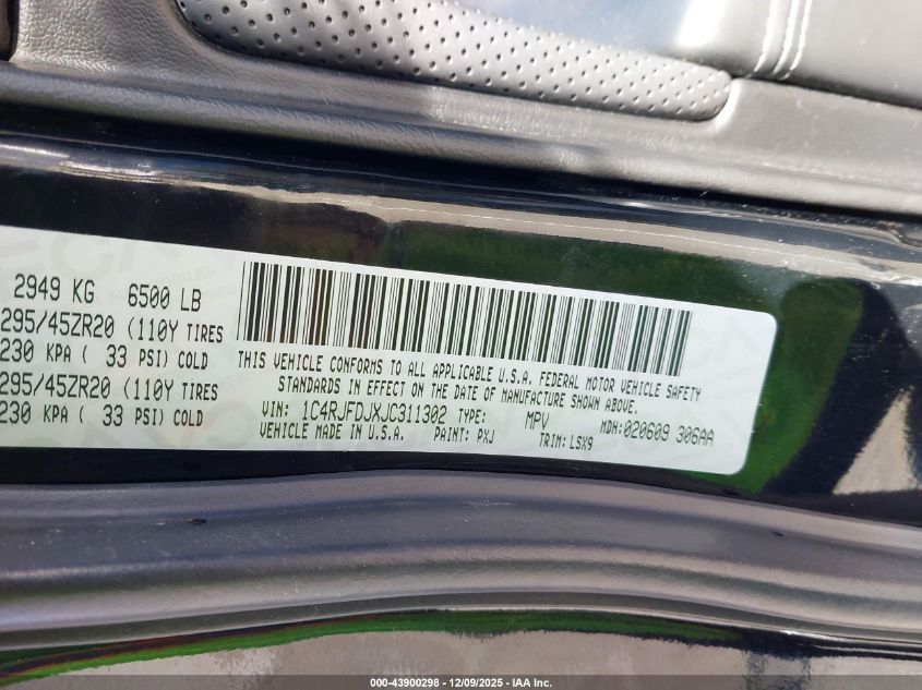 2018 JEEP GRAND CHEROKEE 2018 року Бензин, 6.4, Повний привід, vin - 1C4RJFDJXJC311302 з США