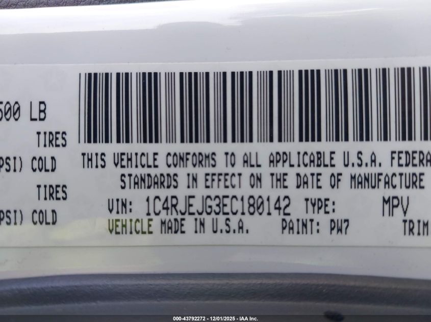 Колір БілийЦиліндри 6VIN 1C4RJEJG3EC180142Стан Заводиться та їде (перевірено)Ушкодження Права сторона AutoRIA