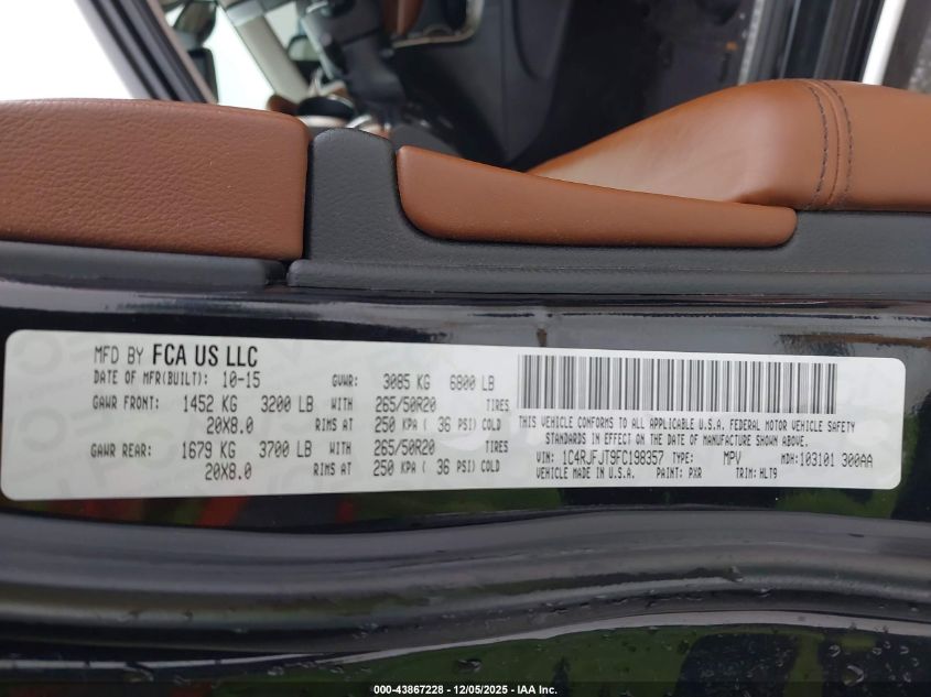 2015 JEEP GRAND CHEROKEE 2015 року Бензин, 5.7, Повний привід, vin - 1C4RJFJT9FC198357 з США