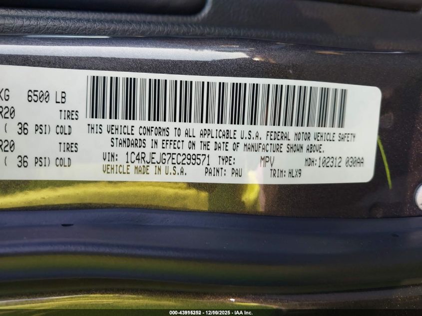 2014 JEEP GRAND CHEROKEE 2014 року Бензин, 3.6, , vin - 1C4RJEJG7EC299571 з США