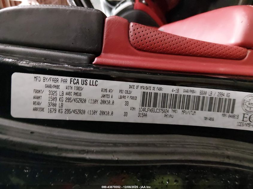 2018 JEEP GRAND CHEROKEE 2018 року Бензин, 6.2, Повний привід, vin - 1C4RJFN93JC375024 з США