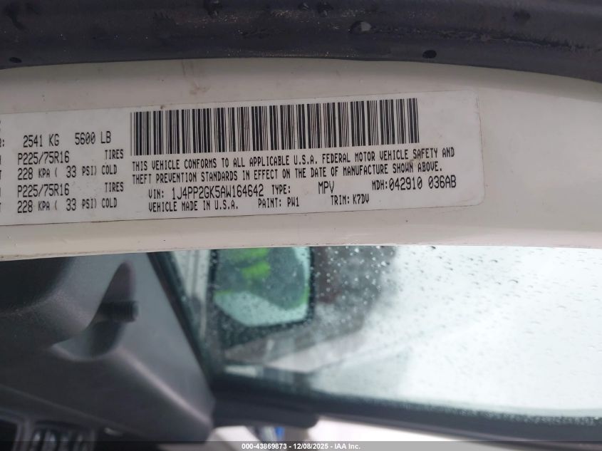 Колір БілийЦиліндри 6VIN 1J4PP2GK5AW164642Стан Заводиться та їде (перевірено)Ушкодження Передня або задня