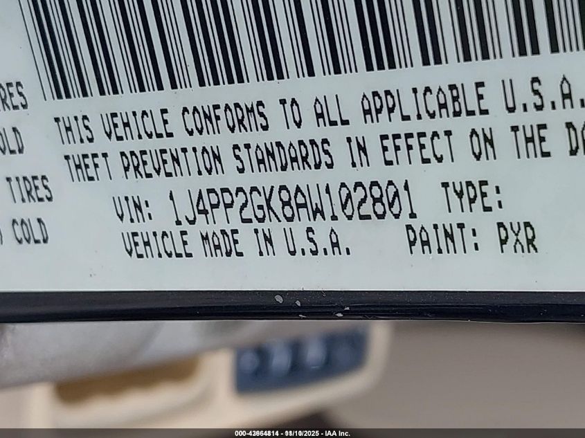 Колір ЧорнийЦиліндри 6VIN 1J4PP2GK8AW102801Стан НевідомоУшкодження З боків