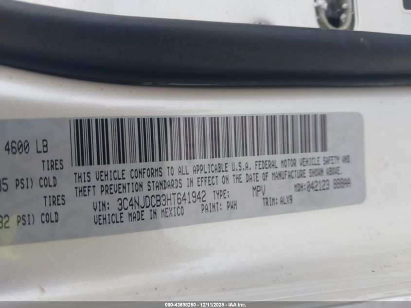 Колір Циліндри 4Привід Повний привідVIN 3C4NJDCB3HT641942Стан НевідомоУшкодження Ліва сторона