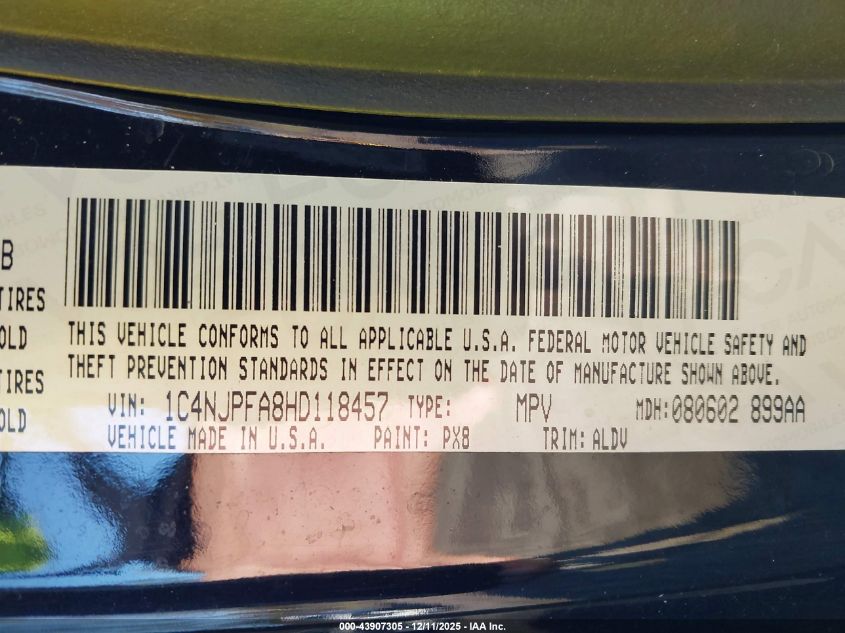 Колір Циліндри 4Привід Передній привідVIN 1C4NJPFA8HD118457Стан НевідомоУшкодження Невідомо