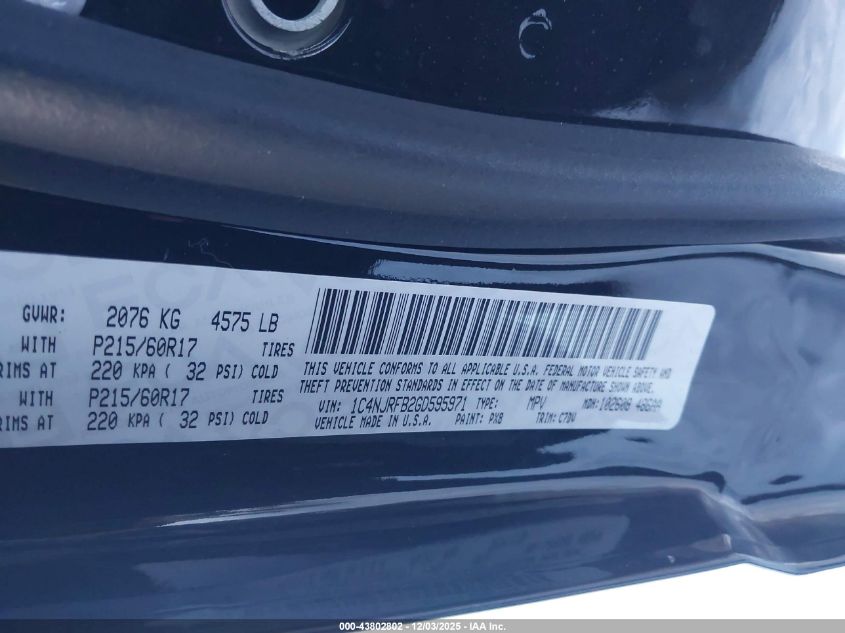 Колір ЧорнийЦиліндри 4Привід Повний привідVIN 1C4NJRFB2GD595971Стан Заводиться та їде (перевірено)Ушкодження Задня права AutoRIA