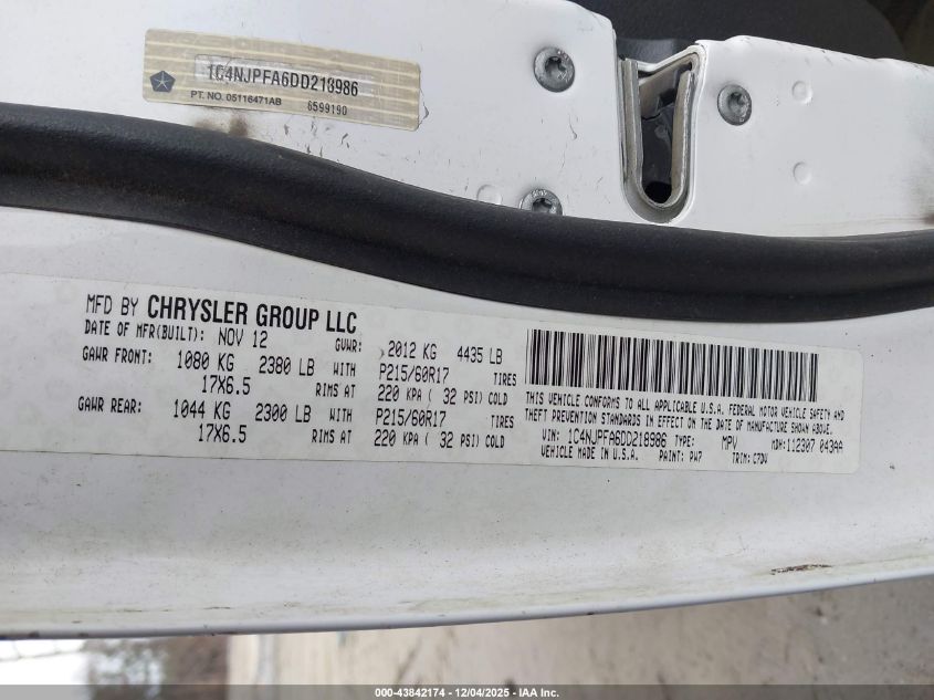 Колір БілийЦиліндри 4Привід Передній привідVIN 1C4NJPFA6DD218986Стан Заводиться та їде (перевірено)Ушкодження Задня ліва AutoRIA