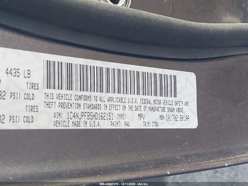 Колір Циліндри 4Привід Передній привідVIN 1C4NJPFB5HD162151Стан НевідомоУшкодження Передня або задня