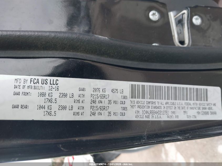 2017 JEEP PATRIOT 2017 року Бензин, 2.4, Повний привід, vin - 1C4NJRBB4HD212751 з США