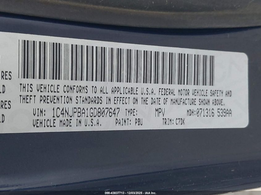 2016 JEEP PATRIOT 2016 року Бензин, 2.0, Передній привід, vin - 1C4NJPBA1GD807647 з США