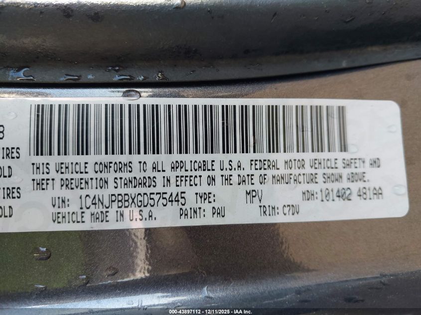 2016 JEEP PATRIOT 2016 року Бензин, 2.4, Передній привід, vin - 1C4NJPBBXGD575445 з США