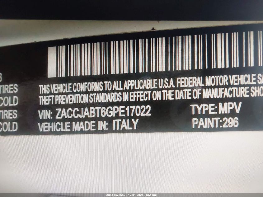 2016 JEEP RENEGADE 2016 року Бензин, 2.4, Передній привід, vin - ZACCJABT6GPE17022 з США