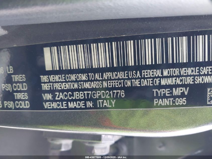 Колір СірийЦиліндри 4Привід Повний привідVIN ZACCJBBT7GPD21776Стан Заводиться та їде (перевірено)Ушкодження Передня права AutoRIA