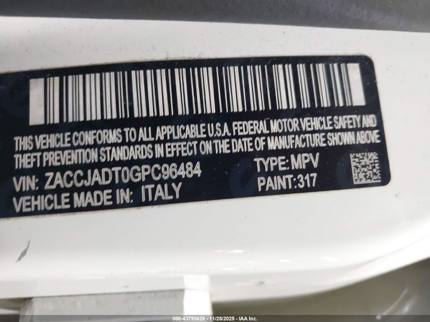 2016 JEEP RENEGADE 2016 року Бензин, 2.4, Передній привід, vin - ZACCJADT0GPC96484 з США