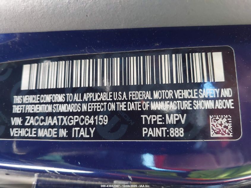 Колір СинійЦиліндри 4Привід Передній привідVIN ZACCJAATXGPC64159Стан Заводиться та їде (перевірено)Ушкодження Ліва сторона AutoRIA