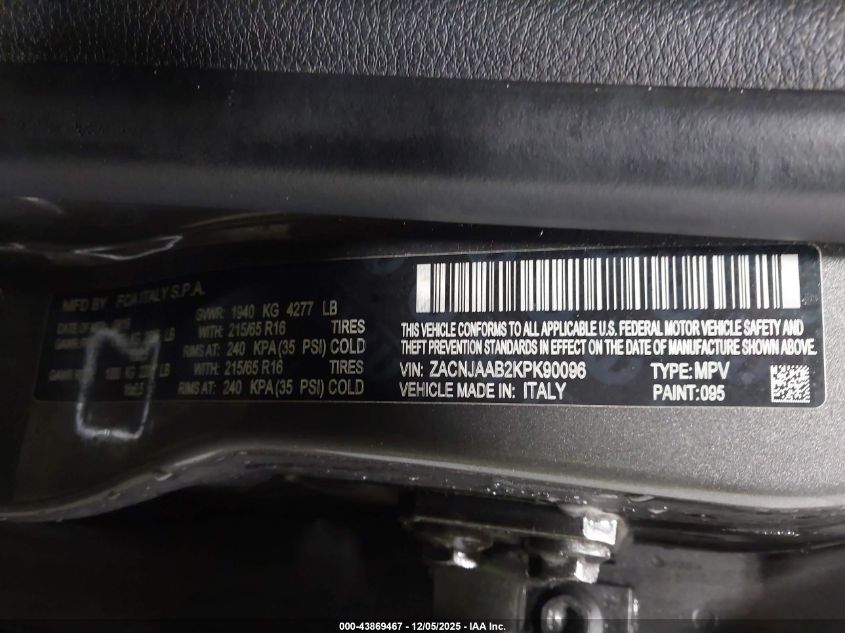2019 JEEP RENEGADE 2019 року Бензин, 2.4, Передній привід, vin - ZACNJAAB2KPK90096 з США