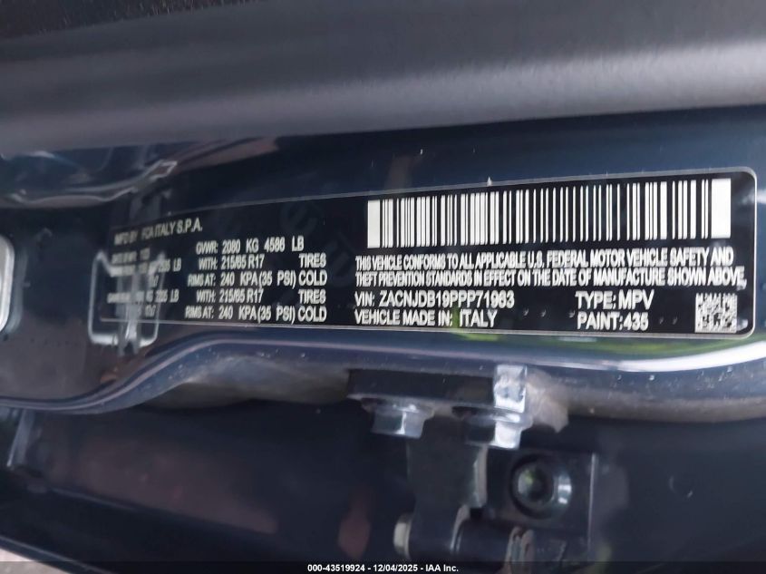 Колір СинійЦиліндри 4Привід Повний привідVIN ZACNJDB19PPP71963Стан СтаціонарноУшкодження Звичайний знос AutoRIA