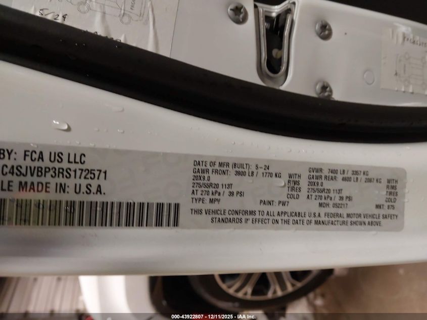 Колір Циліндри 6Привід Повний привідVIN 1C4SJVBP3RS172571Стан НевідомоУшкодження Звичайний знос