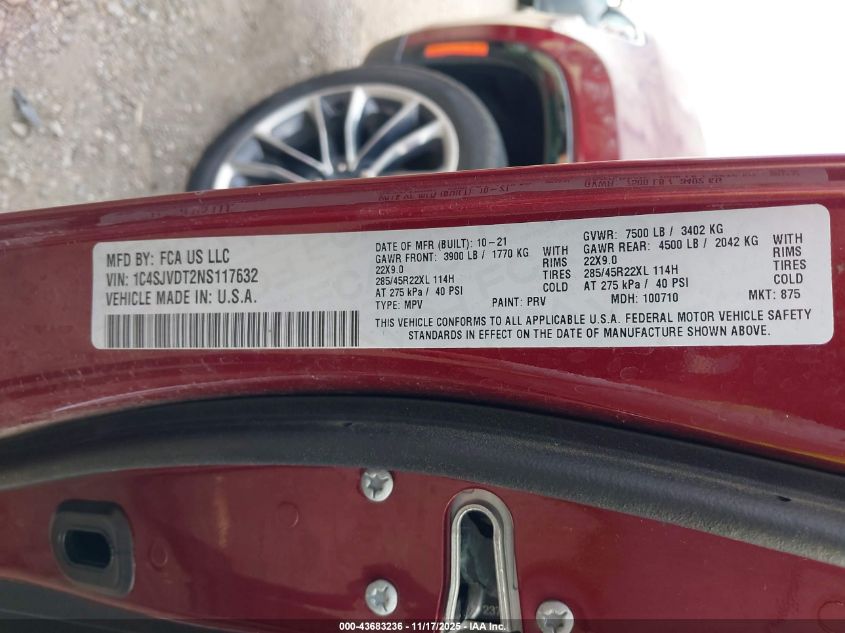 Колір ЧервонийЦиліндри 8Привід Повний привідVIN 1C4SJVDT2NS117632Стан Заводиться та їде (перевірено)Ушкодження Град AutoRIA