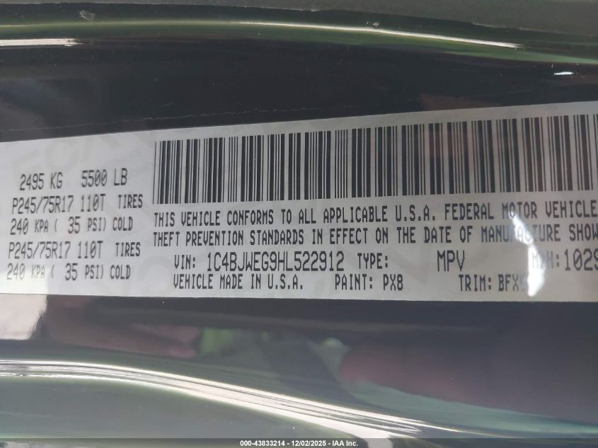 2017 JEEP WRANGLER 2017 року Бензин, 3.6, Повний привід, vin - 1C4BJWEG9HL522912 з США